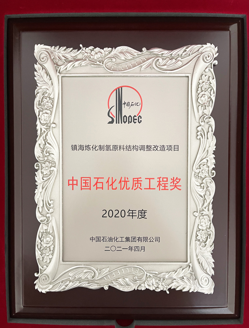 由公司参建的“镇海炼化制氢原料结构调整改造项目”荣获2020年度中石化优质工程奖
